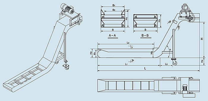 TGP 型提升刮板式排屑機外形尺寸圖