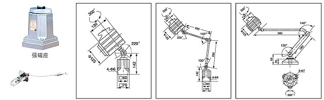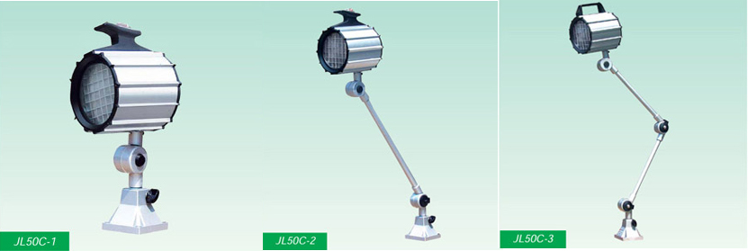 JC50C光源采用鹵鎢燈泡聚光封閉。有五個活動部位組合的工作燈。并具有防水、防侵蝕等優(yōu)點。適應(yīng)于各種大、中型數(shù)控機床。組合機床,加工中心及普通機床的照明。