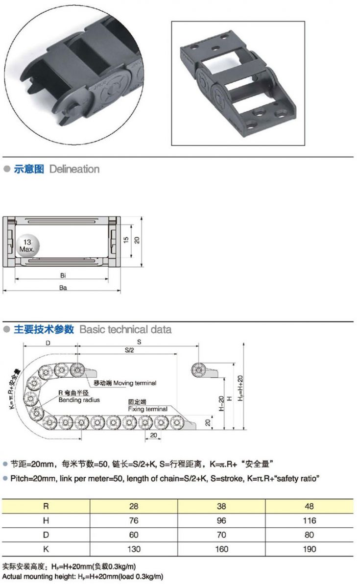 名稱:柔性 材質(zhì):PVC 系列號:JN15Q.1.B 長度:50pitch/m 內(nèi)高:15mm 內(nèi)寬:20-40mm 彎曲半徑:283848 應(yīng)用機(jī)械:全部